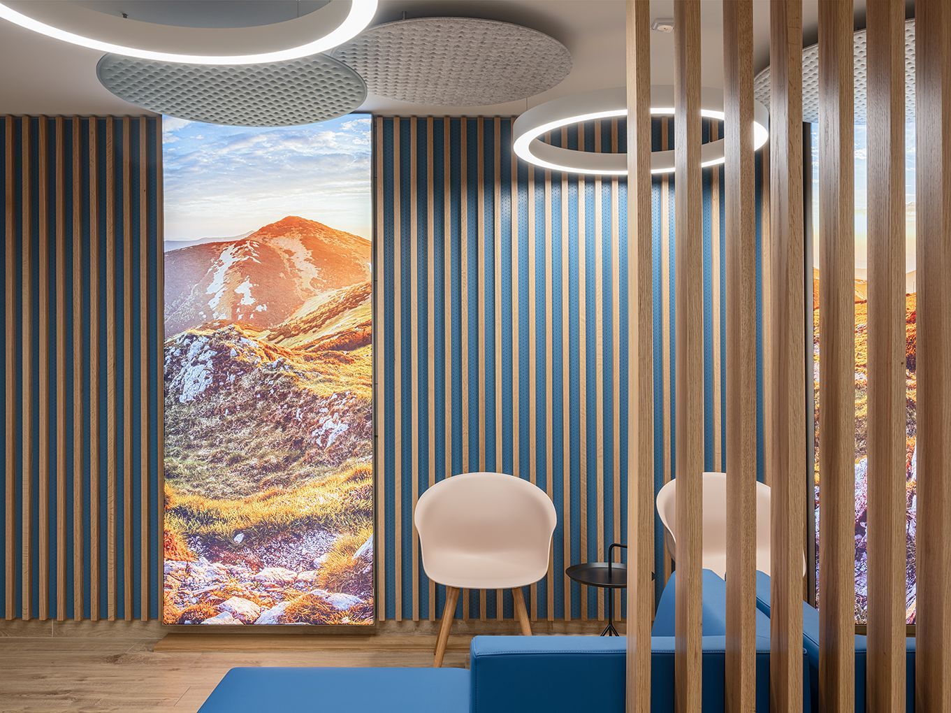 Die künstlerische Ausgestaltung wurde in Zusammenarbeit mit Herrn Eicken, Architekturfotograf, entwickelt und umgesetzt. Sie nimmt Bezug auf das Thema gebaute Umwelt/Natur und Auswirkung auf uns Menschen. Durch Hinzufügen von Aphorismen, die seitens der Therapeuten ausgewählt wurden, erhalten die Bilder einen Sinnspruch zu Lebensweisheiten.